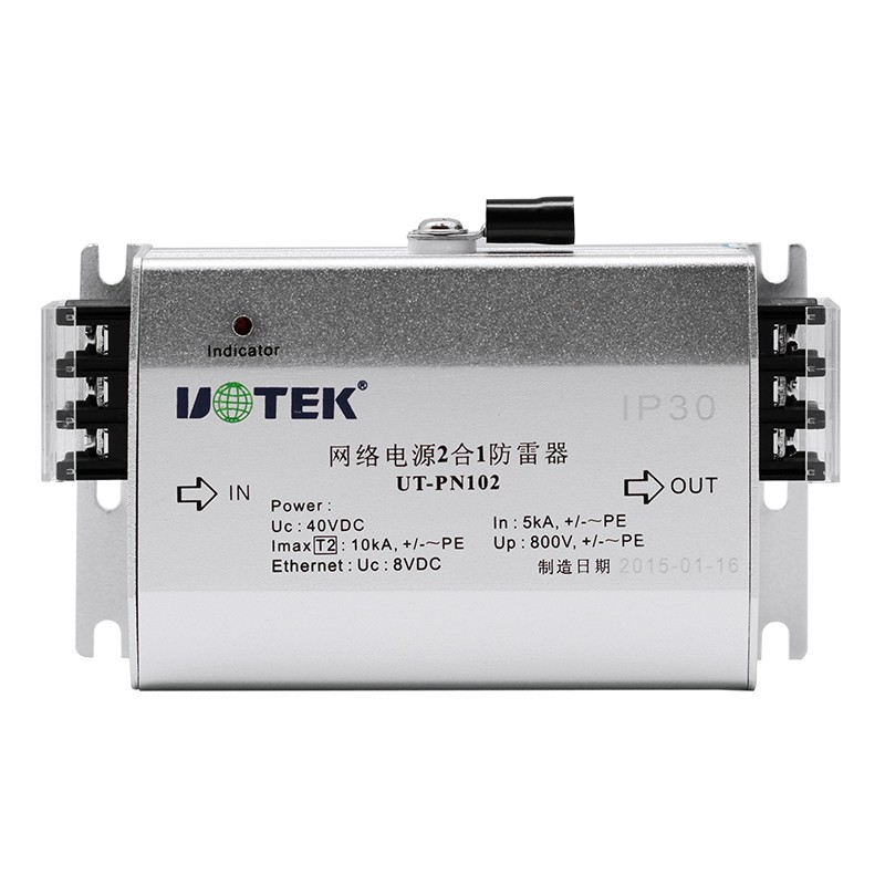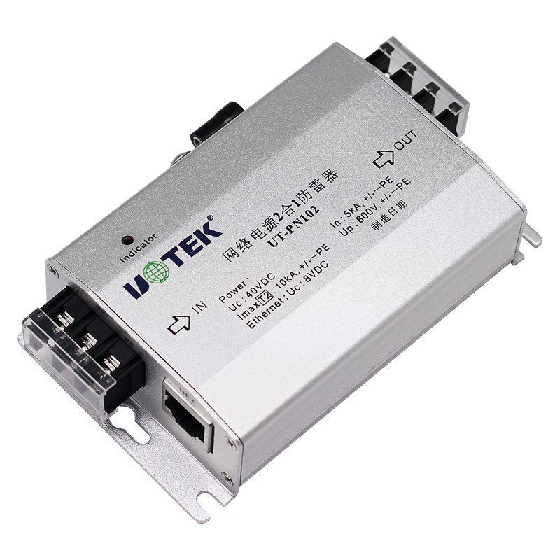 產品名稱:防雷器 產品型號:UT-PN102 信號接口:網絡電源二合一